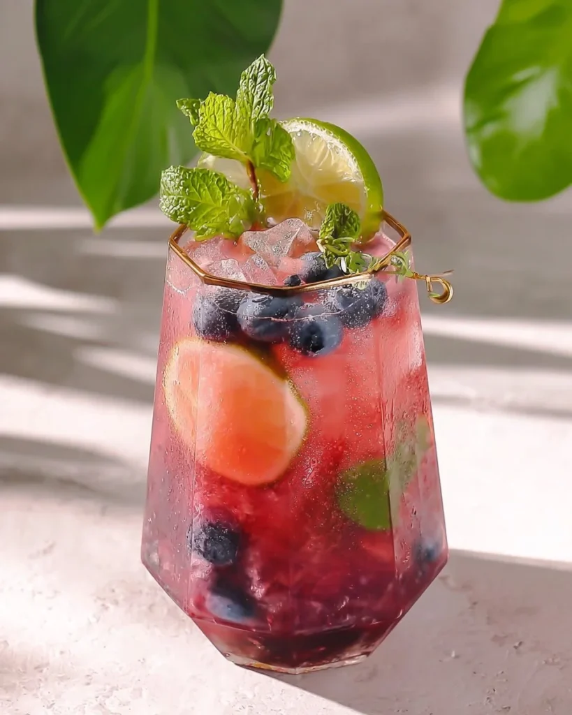 - Give the mocktail a gentle stir and garnish with extra blueberries or a mint sprig.