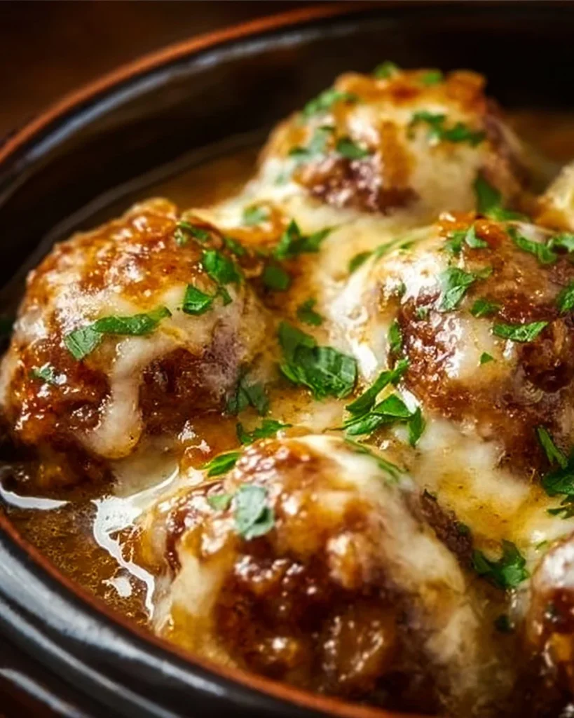 Crockpot French Onion Meatballs