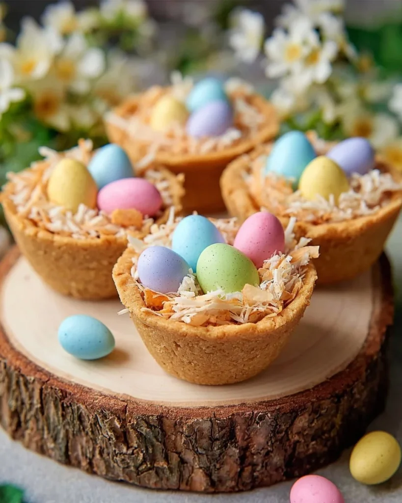 - For a nest look, press the dough into the pan with a spoon to leave a deep center. Bake as above.