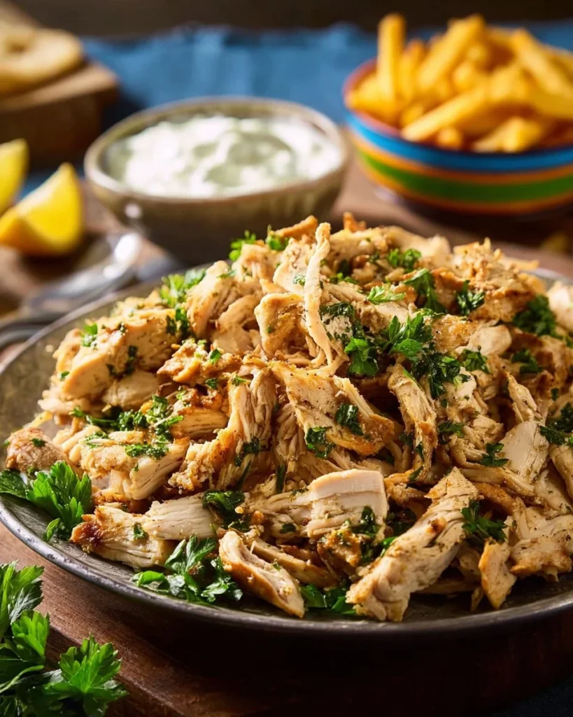 - High-protein / low-carb version: Skip the pita and serve sliced gyro chicken over a big bowl of greens or cauliflower rice. Add extra tzatziki on the side. This creates a low carb, high protein meal that is good for weight loss and keto-style plans.