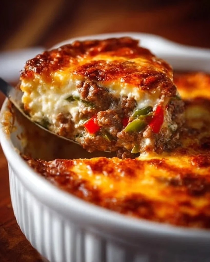 This casserole is flexible. You can change the peppers or cheese to match what you have. It is filling and full of protein. If you like simple casseroles like a slow-cooked casserole for busy days, you may enjoy the easy comfort of a crockpot hamburger potato casserole as another family favorite.
