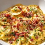 When serving Olive Garden Ravioli Carbonara, presentation is important. Serve the ravioli in shallow bowls or on plates. Top with extra grated Parmesan cheese and a sprinkle of chopped fresh parsley. You may also drizzle a little olive oil for added flavor. Serve the dish warm alongside a fresh salad or garlic bread for a hearty meal. This dish is best enjoyed right after cooking so that the sauce remains creamy and delicious.